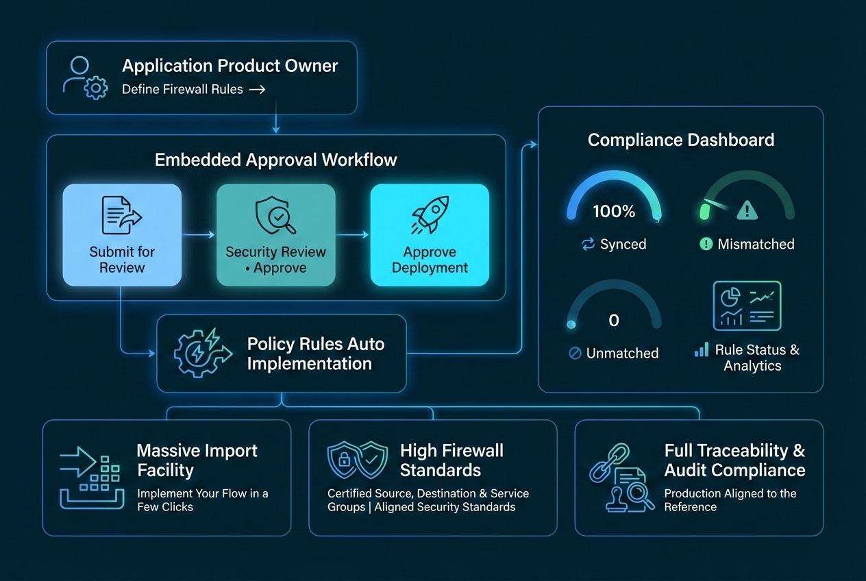 Reprenez le contrôle de vos Firewalls grâce à l'automatisation Ruleblade. Simplifiez la gestion de vos configurations, dans votre infrastructure spécifique, pour garantir la sécurité et l’efficacité de votre réseau.